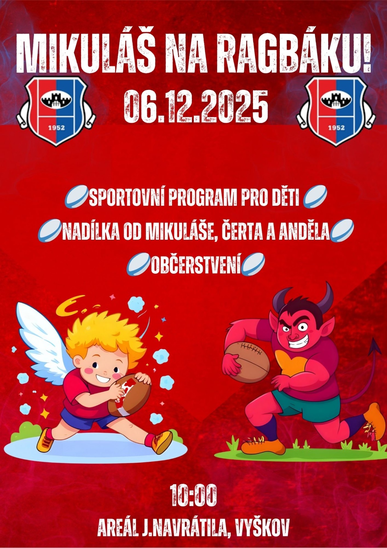 Jako každý rok, i letos zveme vás a vaše děti na tradičního Mikuláše na ragbáku.